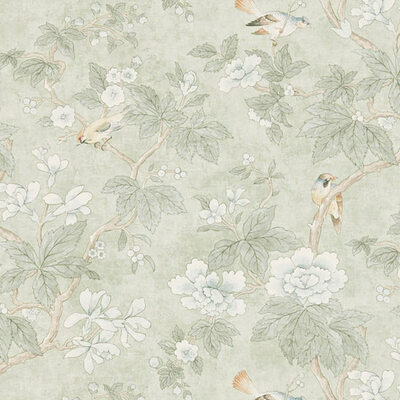 Inspired by an archive document, branches of an abundant tree and singing birds trail across this textured linen fabric design in muted, fresh colourways.