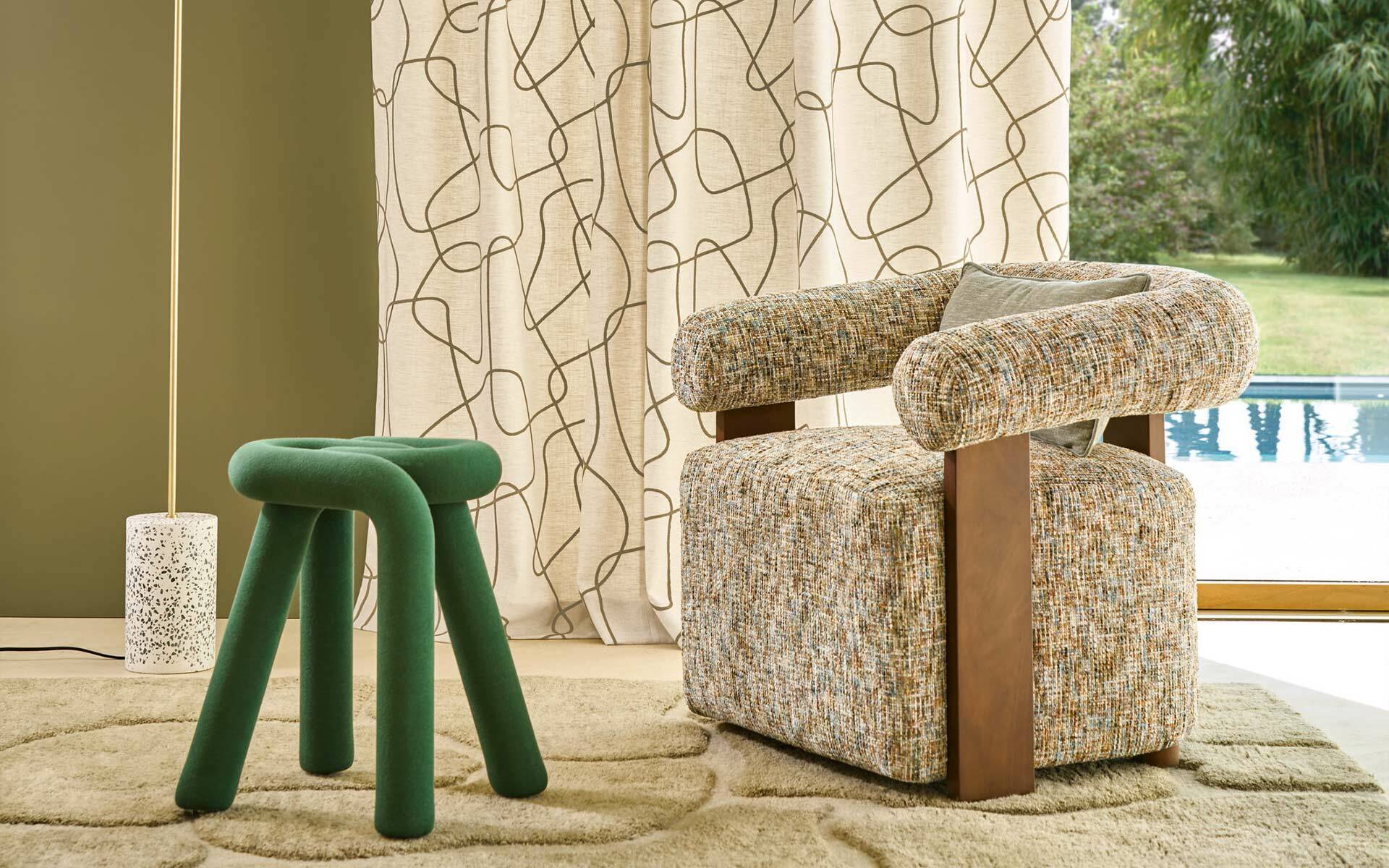 Wavy and organic embroidery, HARBOURSIDE evokes the movement of water or natural lines in a softened urban landscape. Its embroidered curves, with fluid contours create a calming rhythm. The textured thread with a matte finish adds substance and depth to the pattern. A delicately graphic design, both contemporary and natural.