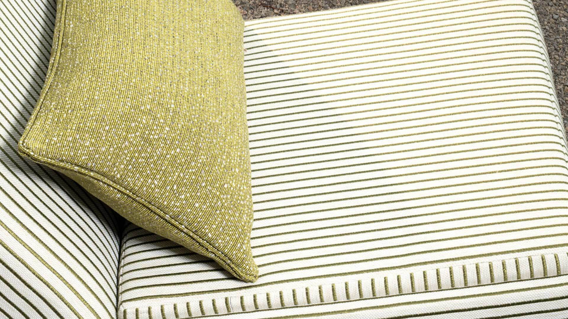 The Sant Antonino stripe features a range of cheerful and dynamic colours including Gold, Arabesque, Olive Green and Vars Plum for standard-use outdoor furniture. Its 100% polypropylene composition is the best in the IN & OUTDOOR market guaranteeing good resistance to chlorinated and salt water, mildew and bad weather conditions and give its colours excellent lightfastness. The Sant Antonino fabric is easy-care. The environmental impact is reduced as polypropylene is easier recycled.