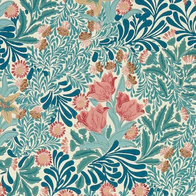 Rising to the surface of this densely packed design is a forest floor full of floral delight. Influenced by the composition of medieval woodcuts, William Morris designed Bower in 1877 as a vibrant tribute to the forest walks and flowers he so adored. Bough’s Green/Rose is the closest colour story to Morris’s original, whilst Indigo and Herball offer cooler variations.